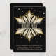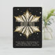 Elegante invitación de fiesta de vacaciones de estilo plano hecha en negro, con un tono dorado purpurinoso que parece copo de nieve, en el medio. Personaliza todo el texto, en la tarjeta, para que se adapte a las necesidades de tu empresa.