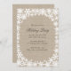 Brillantes de nieve blancos en un fondo burlap ilustrado decoran esta Invitación de Fiesta Vacacional. Si necesita más elementos en esta colección, simplemente contáctenos a prettyfancyinvites@gmail.com con su solicitud.