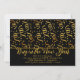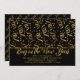 Plantilla de invitación para fiesta de Nochevieja en negro y dorado. Confeti y serpentinas en colores dorados caen en la parte superior de esta invitación horizontal. “Celebra el Año Nuevo” es el texto grande en estilo de letra moderna y giratoria. Toda la información de la fiesta se imprime en cuatro líneas debajo del texto grande. Los números del año nuevo hacen un patrón en la parte posterior de la tarjeta, ¡así que no te olvides de cambiarlo! Se muestra con esquinas redondeadas mejoradas, que se pueden cambiar fácilmente. Mejora el tipo de papel según tus preferencias.