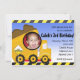 Invitación a la fiesta de fotos de camión de volteo de construcción. Elija personalizar para agregar texto, elimine cualquier área de texto para dejar en blanco.