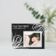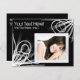 Esta cálida invitación o invitación en blanco y negro es perfecta para cualquier ocasión. Diseño en caliente con fondo negro sólido y remolinos y remolinos blancos.