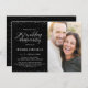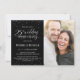 Esta elegante y festiva invitación para la fiesta de aniversario de bodas de plata número 25, de 4,5" x 6,25", presenta confeti plateado (con lámina simulada) con las palabras "aniversario de bodas número 25" en una tipografía plateada. Hay un área de foto personalizada para la imagen de los invitados de honor. El fondo es negro, pero se puede cambiar a cualquier color que desee. Los detalles de la celebración se pueden personalizar fácilmente para su evento especial. La parte trasera de la tarjeta presenta un patrón de puntos plateados, también con fondo negro que puede personalizar a su gusto. Una forma hermosa y sencilla de invitar a los invitados a celebrar un aniversario de bodas de plata. También están disponibles tarjetas de RSVP y de agradecimiento en mi tienda (https://www.zazzle.com/store/grandviewgraphics/products?cg=196583251194252