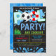 Hace una gran invitación para celebrar el cumpleaños con tema de fútbol en la piscina de un niño, la fiesta de fin de temporada del equipo de fútbol, el fin del verano, el fin del año escolar, o para cualquier otra ocasión divertida de fiesta de piscina deportiva.