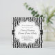 Invitación formal de boda o evento especial en blanco y negro con fondo floral de chintz.