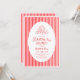 Invitación a la fiesta de Galentine's rosa roja con ilustración dibujada a mano y rayas modernas.