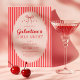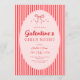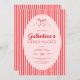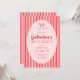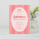 Invitación a la fiesta de Galentine's rosa roja con un lazo dibujado a mano y rayas de moda.