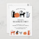 Gatos cortos y espeluznantes, linternas de calabaza y fantasmas. Una divertida invitación a la fiesta de cumpleaños de Halloween o otoño, con una calabaza de gatito a juego en la parte de atrás. Personaliza con tus propios detalles de celebración. Arte original de Nic Squirrell.