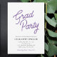 Esta invitación a la fiesta de graduación presenta un diseño simple acentuado con texto en letra cursiva púrpura que dice "Fiesta de Graduación". Personalizada con todos los detalles de su celebración de graduación.
