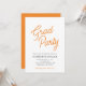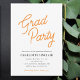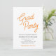 Esta invitación para la fiesta de graduación presenta un diseño simple acentuado con texto de letra naranja que dice "Fiesta de graduación". Personalizado con todos los detalles de su celebración de graduación.