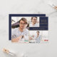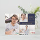 Esta moderna invitación de fiesta de graduación se puede personalizar con tus 3 fotos especiales de graduado y detalles de la celebración en tipografía dorada sobre un fondo azul marino. Diseñado por Thisisnotme©