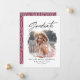 Invitación de graduación de tipografía fotográfica geométrica e invitación fiesta. Con tipografía audaz y texto de guión de tendencia. El color de fondo burdeos geométrico puede ser alterado.