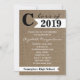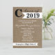 Esta invitación a la fiesta de graduación de 2015 fue creada con un fondo de color marrón con una gran "C" a la izquierda de un cartel blanco con el año de graduación y las palabras "clase de" encima del cartel. Un banner blanco más pequeño aparece en la parte inferior donde se puede colocar el nombre de la escuela. Las palabras "Por favor únanse a nosotros en la celebración de la graduación de" aparecen debajo del cartel superior y hay un lugar para que usted personalize el diseño con el nombre de su graduado y todos los detalles de la invitación a la fiesta de graduación. El reverso de la invitación también tiene el aspecto de burlap para hacer un diseño moderno y moderno para tus invitaciones a fiestas de graduación. Copyright henishouseofpaper