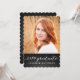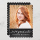 Moderna tarjeta de fotos que invita a su familia y amigos a la fiesta de graduación de su hija. Diseño de la invitación a la fiesta de graduación vertical simple para graduados de 2014. Diseño de Elke Clarke © Visite nuestra tienda www.zazzle.com/monogramgallery* para más diseños y estilos. Añade tu propia foto y texto. Una tipografía blanca simple manuscrita texto tipo letra en un fondo negro de pizarra (efecto foto impreso) con las palabras "Graduado 2014". Reemplace la foto de ejemplo con la suya propia. Colores en blanco y negro. Hay otros estilos y colores disponibles.