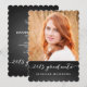 Una tipografía blanca simple manuscrita texto tipo letra en un fondo negro de pizarra (efecto foto impreso) con las palabras "Graduado 2015". Moderna tarjeta de fotos que invita a su familia y amigos a la fiesta de graduación de su hija. Diseño de la invitación a la fiesta de graduación vertical simple para graduados de 2015. Diseño de Elke Clarke © Visite nuestra tienda www.zazzle.com/monogramgallery* para más diseños y estilos. Añade tu propia foto y texto. Reemplace la foto de ejemplo con la suya propia. Colores en blanco y negro. Hay otros estilos y colores disponibles.