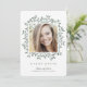 Un diseño moderno sencillo y encantador que presenta la foto de tu graduado en la parte delantera en un marco de hermosas hojas de eucalipto en tonos verdes neutros de color. Todos los detalles del fiesta o de la invitación están en la parte trasera. El encantador estilo natural con una sensación femenina en formato vertical resalta la foto de tu graduado en la parte delantera.