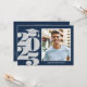 Prepárate para tu fiesta de graduación con nuestras modernas invitaciones de fotos azul marino. Con dos lugares para mostrar tus preciados recuerdos, estas invitaciones únicas aseguran que tu celebración será la charla de la ciudad. Atrévete a ser diferente y deja que tus invitaciones reflejen tu estilo y logros individuales.