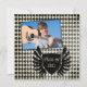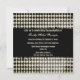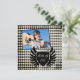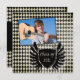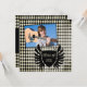Esta invitación a la fiesta de invitación de graduación 5.25x5.25 tiene un patrón de formas de diamante de tablero de ajedrez en blanco y negro. Hay un escudo negro afligido en el frente con "Clase de 2011" escrito en él. Encima de eso, hay un lugar para que añadas tu fotografía. Al revés, puede realizar fácilmente personalizares de su información.
