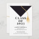 Comience bien su evento con nuestro moderno y elegante tapón negro de grad y su tassel dorado con una invitación con tarjeta postal de la fiesta de graduación de fondo blanco. Invitación perfecta para la graduación de la escuela secundaria o la graduación universitaria. Simplemente rellena tu información y agrega tu foto y estás listo para irte. Visite nuestra tienda para ver esta invitación a graduación en una gran variedad de colores escolares