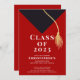 Comience bien su evento con nuestro moderno y elegante tapón negro de grad y su medallón de oro con una invitación a una fiesta de graduación de fondo rojo. Invitación perfecta para la graduación de la escuela secundaria o la graduación universitaria. Simplemente rellena tu información y agrega tu foto y estás listo para irte. Visite nuestra tienda para ver esta invitación a graduación en una gran variedad de colores escolares