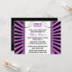 Esta invitación a la fiesta de graduación tiene rayas moradas y negras en los lados con tu información personalizada en el centro. Esta invitación tiene un estilo de gótico grunge.