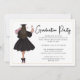 Invitación del Partido de Graduación de Guión Casual Moderno - Tipografía de escritura moderna con un diseño mínimo. Una bella graduada lleva su diploma y un ramo de rosas rosas. La carta se acentúa con un delgado borde dorado. La invitación a la fiesta de graduación es parte de una colección.