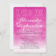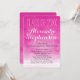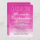 Vibrante y excitante fucsia brillante color de agua rosa fondo con textos verticales blancos e invitaciones a fiesta de graduación de guiones. Hermosa representación artística de colores femeninos, femeninos, alegres y artísticos.
