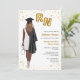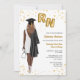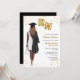 Invitación a la fiesta de graduación escolar de enfermería. Invitación de enfermera para su hija, sobrina, madre, tía, primo o amigo que se está graduando de la escuela de enfermería y ahora es enfermera oficialmente. Invitación a graduadas de la escuela de Enfermería para fiestas de posgrado que celebran a mujeres que acaban de graduarse en la escuela de enfermería. ¡Celebra la nueva enfermera registrada con esta elegante invitación a graduarse de enfermería! Con retrato ilustrado de una mujer de piel oscura con pelo largo y rizado. El graduado de enfermería lleva un elegante vestido blanco, una bata negra de graduación sobre su hombro y una gorra negra de graduación a juego. Lleva globos de Relieve metalizado dorado con las letras RN en una mano y un estetoscopio en la otra. Acentuada con un confetti dorado brillante, captura perfectamente la alegría y la emoción de su gran logro.