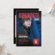 Destaca con este diseño de portada de revista elegante y audaz. La invitación de celebración de graduación de portada de revista presenta tipografía en negrita en rojo y blanco.