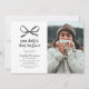 Expresa tu orgullo y alegría por el próximo graduado en tu vida con nuestras elegantes invitaciones para la fiesta de graduación. Elaboradas con un simple fondo blanco, un llamativo lazo de acuarela negra y una foto personalizada del graduado, estas invitaciones destacan entre la multitud. El juego de palabras divertido "lo lograste, ¡dale el toque final!" añade un toque de humor, mientras que la plantilla de texto moderna permite una fácil personalización. Es la combinación perfecta de diseño chic y toque personal para celebrar este hito especial.