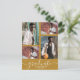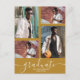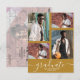 Añade tus fotos favoritas a estas postales de invitación de la fiesta de graduación con letras de grado y clase de moda en un fondo de color de escuela de oro en el frente. Más diseños y colores en nuestra colección.