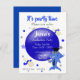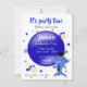 Graduación Invitación a la fiesta de los tiburones, Un ilustracion único y divertido con su gorra de graduación, un círculo blanco en medio y diferentes tonos de fondo de estrellas. Personalice este diseño con su nombre o texto. Elementos coincidentes en la tienda para completar su fiesta. com com