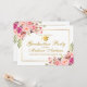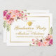 Invitación de la fiesta de graduación del marco dorado color floral rosa