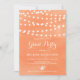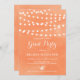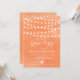 Invitación divertida y caprichosa a la graduación con brillantes luces de cuerda en un rústico fondo de color naranja. Hay otros colores disponibles.