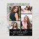 Añade tus fotos favoritas a estas postales de invitación de la fiesta de graduación con las palabras graduadas y clase de en letras de moda en un fondo de color de escuela negra en la parte delantera y tus detalles en la parte posterior. Más diseños y colores hechos en nuestra colección.