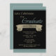 Sencilla pero elegante invitación a la fiesta de graduación en negro y azul turquesa / azul. Personalízala con tu propio texto.