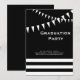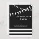 Esta elegante invitación para la fiesta de graduación en negro y blanco está decorada con banderines y rayas en negro y blanco, lo que la hace perfecta para el graduado o graduada.