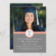 Tarjeta fotográfica personalizado de invitación a graduación con diseño moderno color rosa melocotón, gris oscuro y blanco. Personalizar esta tarjeta de foto de grado agregando el año de tu graduación, tus propias fotos y los detalles de tu fiesta de graduación.