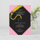 Invitaciones modernas para fiesta de graduación con diseño rosa, negro y dorado que celebran la alegría de la graduación.