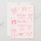 Carta de invitación a la fiesta de graduación de cosquillas y venados con ilustracion de arcos y corazones rosas.