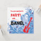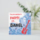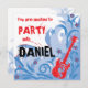Invitación a la fiesta Rock n Roll con guitarra eléctrica. Personalice el nombre y los detalles. Tarjeta de nota de agradecimiento de coordinación: