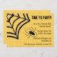 Esta divertida invitación de la fiesta de Halloween 5x7 tiene una espeluznante araña y una telaraña en el frente. El fondo es naranja con truco o trato escrito. Puede personalizar fácilmente la información de su fiesta en el lado derecho. Derechos reservados © Dotted Daisy Designs