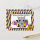 Invite a sus amigos y familiares a su fiesta de Halloween con estas lindas invitaciones de Halloween con un murciélago personalizado sosteniendo caramelos en su ala.