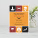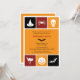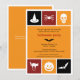 Saca tus disfraces y envía esta invitación contemporánea para hacer una divertida fiesta de Halloween. Esta invitación usa los íconos de Halloween para transmitir deseos espeluznantes. Los colores naranja, rojo y negro rodean los íconos de un gorra brujo, araña, cráneo, murciélago, entre otros para enmarcar tu texto personalizado. Añade cualquier texto adicional al reverso. Disponible en colores alternativos con productos coincidentes.