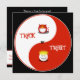 El texto de este truco para tratar la invitación a la fiesta de ángel y diablo de Halloween es totalmente personalizable. Para cambiar el texto, utilice la opción de personalización. Para obtener cambios más extensos en la invitación, como cambiar el tipo de letra, el color de la fuente, el tamaño de la fuente o la ubicación del texto, elija la opción personalizar. Ángulo y diablo en un símbolo yin yang. Una invitación divertida para tu próxima fiesta de halloween. Con cambios en el texto, esto también haría una gran invitación a la fiesta del "cielo y el infierno".
