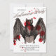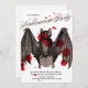 Un ilustracion de murciélago vintage y manchas de sangre roja le dan a esta fiesta de Halloween una vibrante y fría vibración victoriana, lo que la convierte en la elección perfecta para un fiesta con temática de monstruo adulto o vampiro.