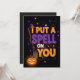 Con la escoba de una bruja, el gato negro y la calabaza resplandeciente, esta invitación prepara el escenario para una noche mágica y misteriosa de Halloween. (Obra de arte generada por IA)
