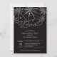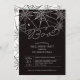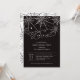 Esta invitación de fiesta de Halloween espeluznante presenta una telaraña que deletrea la palabra "Boo"