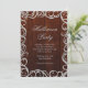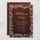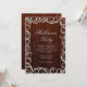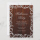 Esta invitación de Halloween gris y marrón vintage se acentúa con un flujo floreciente en un fondo oscuro de madera ilustrado.