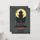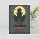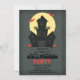 Invitación de fiesta de casa embrujada espeluznante con una casa embrujada espeluznante con murciélagos rojos y jack o'lanterns contra una luna amarilla pálida. Puede mover/eliminar/cambiar la mayoría de los elementos de diseño/fuentes/fondo según su elección/preferencias. ¡No olvide elegir el tipo de papel al pedir sus invitaciones!