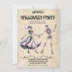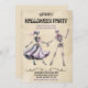 Una espeluznante pero divertida invitación de Halloween al estilo vintage con esqueletos bailando al estilo espeluznante. Ideal para fiestas de Halloween con cócteles, música y diversión. Personalice fácilmente los datos de su fiesta.